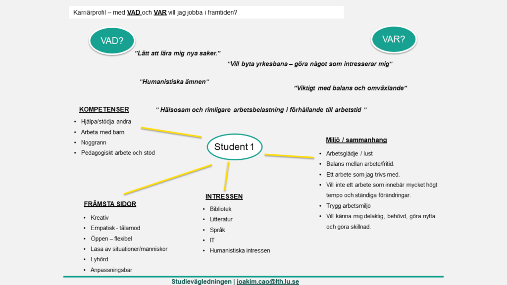 Verksam studie- och karriärvägledare vid ett svenskt lärosäte.
